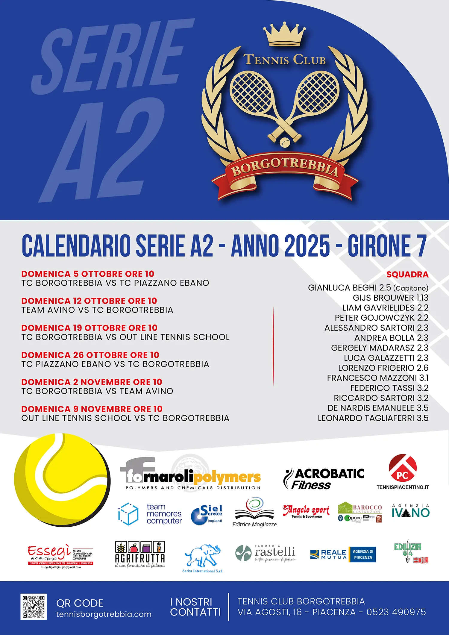 Il Tennis Club Borgotrebbia ha scritto la prima pagina della sua storia in Serie A2. All’esordio assoluto nella categoria, la squadra piacentina ha superato per