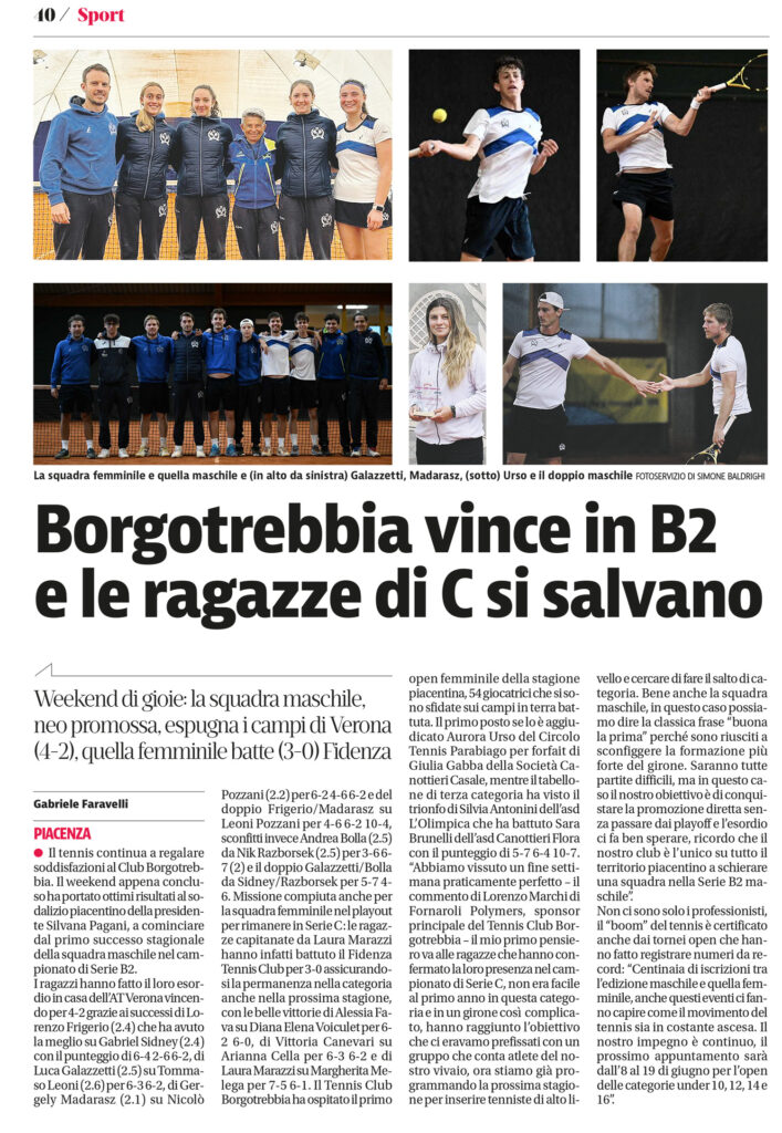 Il tennis continua a regalare soddisfazioni al Club Borgotrebbia.
